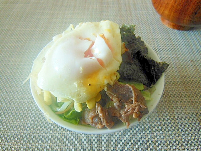 韓国味付のりと焼き肉の目玉焼き丼 レシピ 作り方 By エゾモモンガさん 楽天レシピ